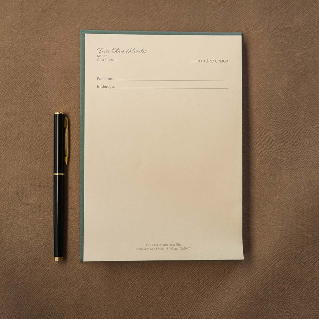 Pensado para acompanhar a rotina de consultórios e clínicas, nossos receituários unem design minimalista, acabamento artesanal e a praticidade que o dia a dia exige.