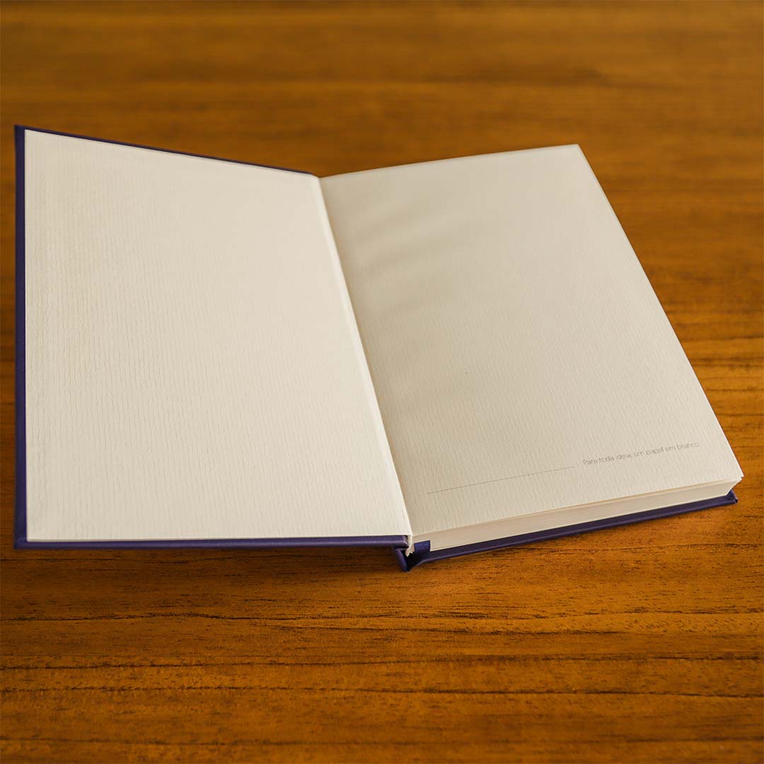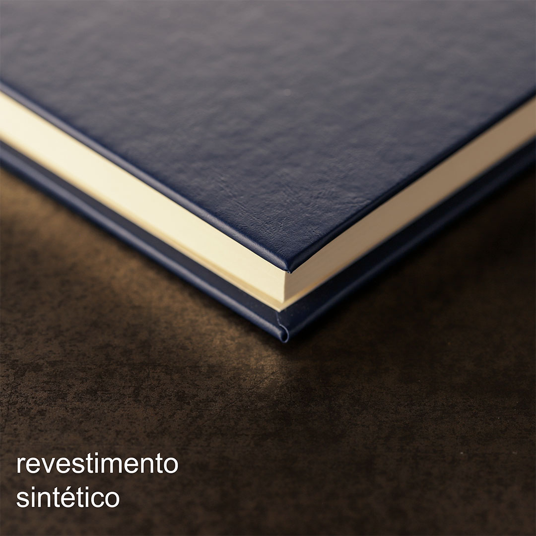 • Capa dura revestida em material sintético, com acabamento artesanal
