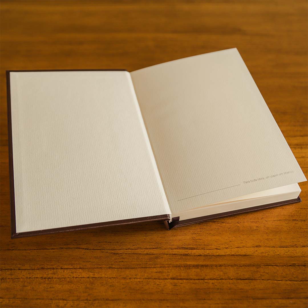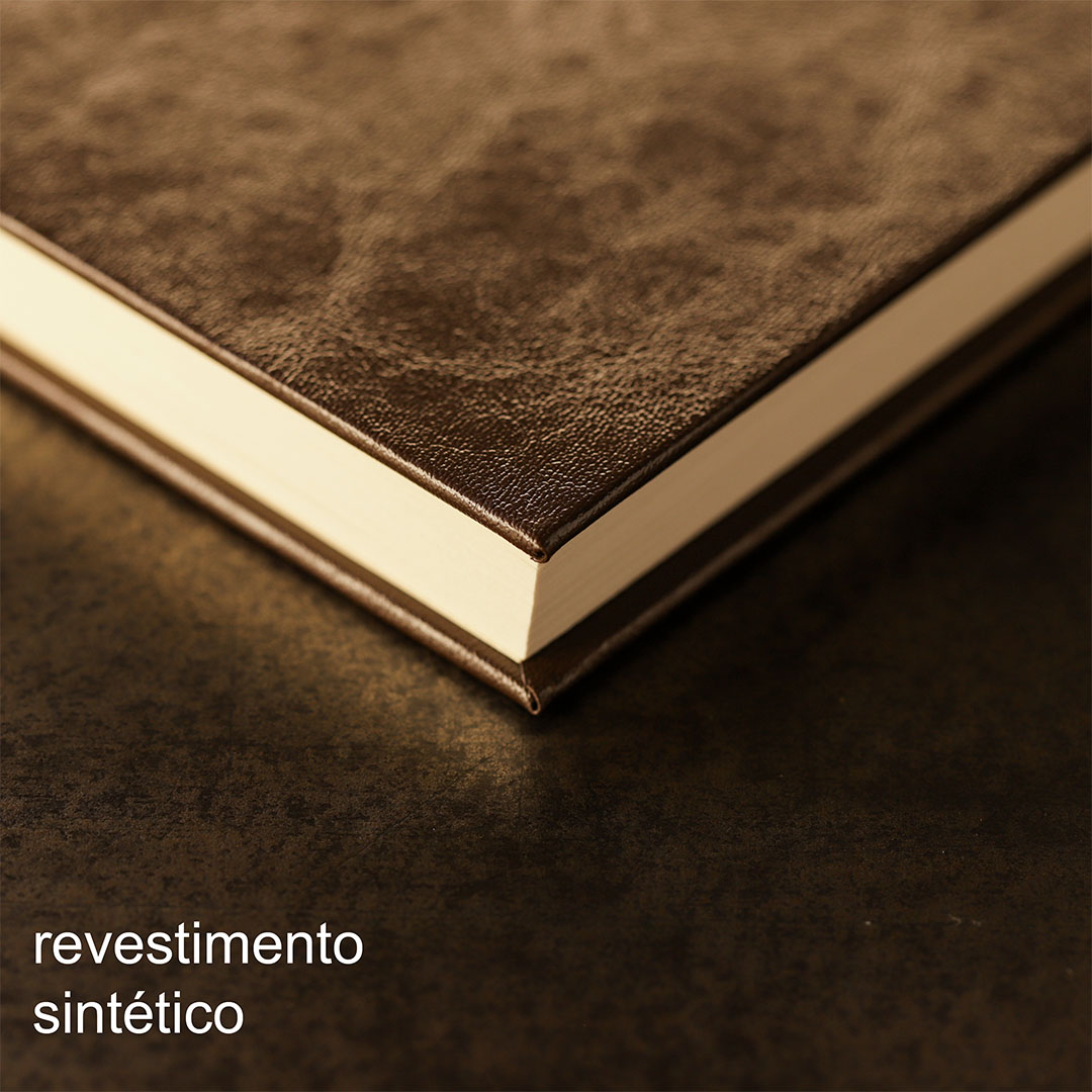 • Capa dura revestida em material sintético, com acabamento artesanal