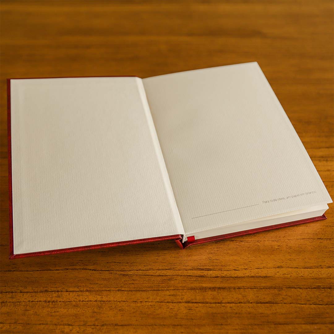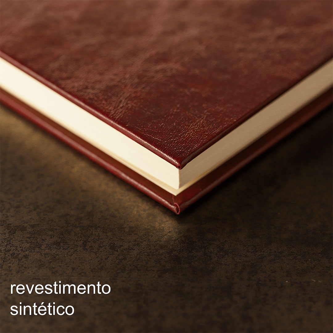 • Capa dura revestida em material sintético, com acabamento artesanal