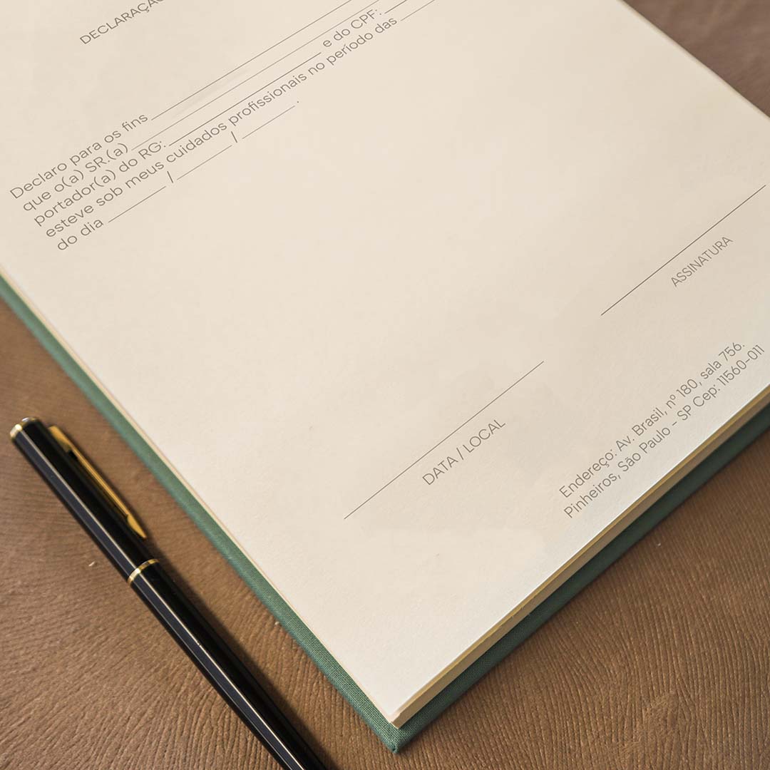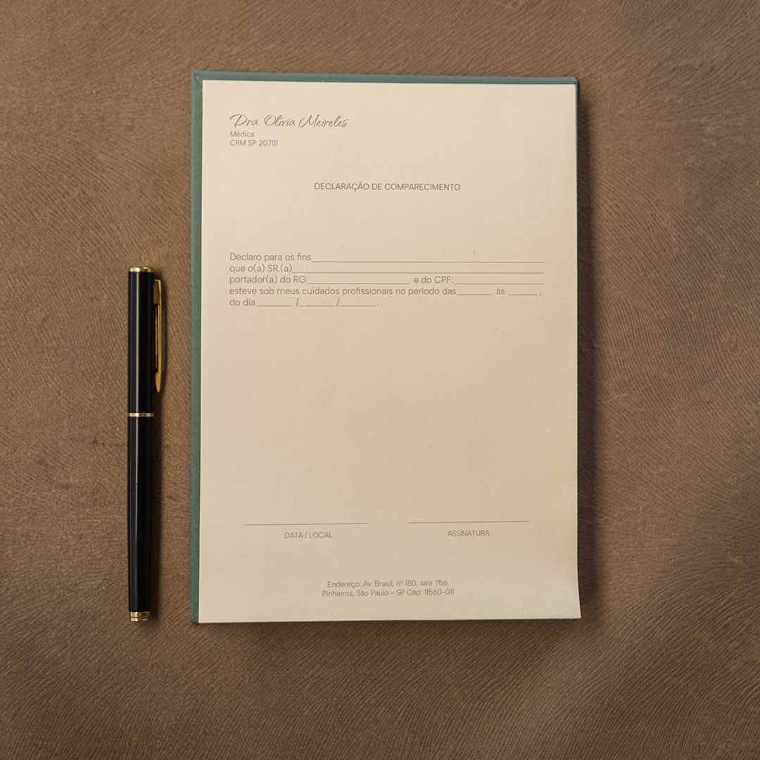 Pensado para acompanhar a rotina de consultórios e clínicas, nossos atestados unem design minimalista, acabamento artesanal e a praticidade que o dia a dia exige.