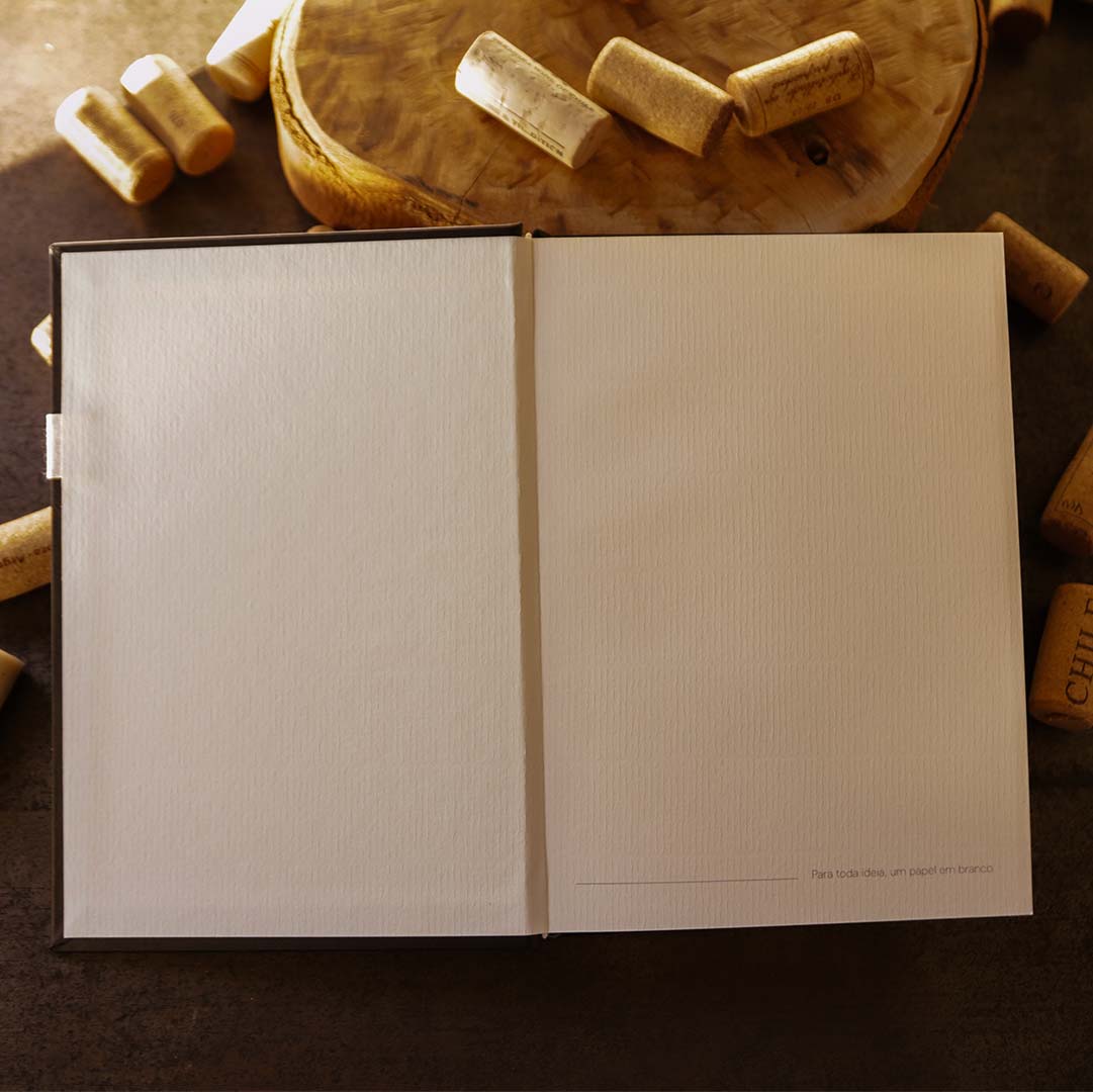 • Duas páginas dedicadas a cada vinho: à esquerda, espaço para anotar todas as características técnicas e sensoriais; à direita, um campo para avaliação pessoal e o lugar perfeito para colar o rótulo da garrafa.