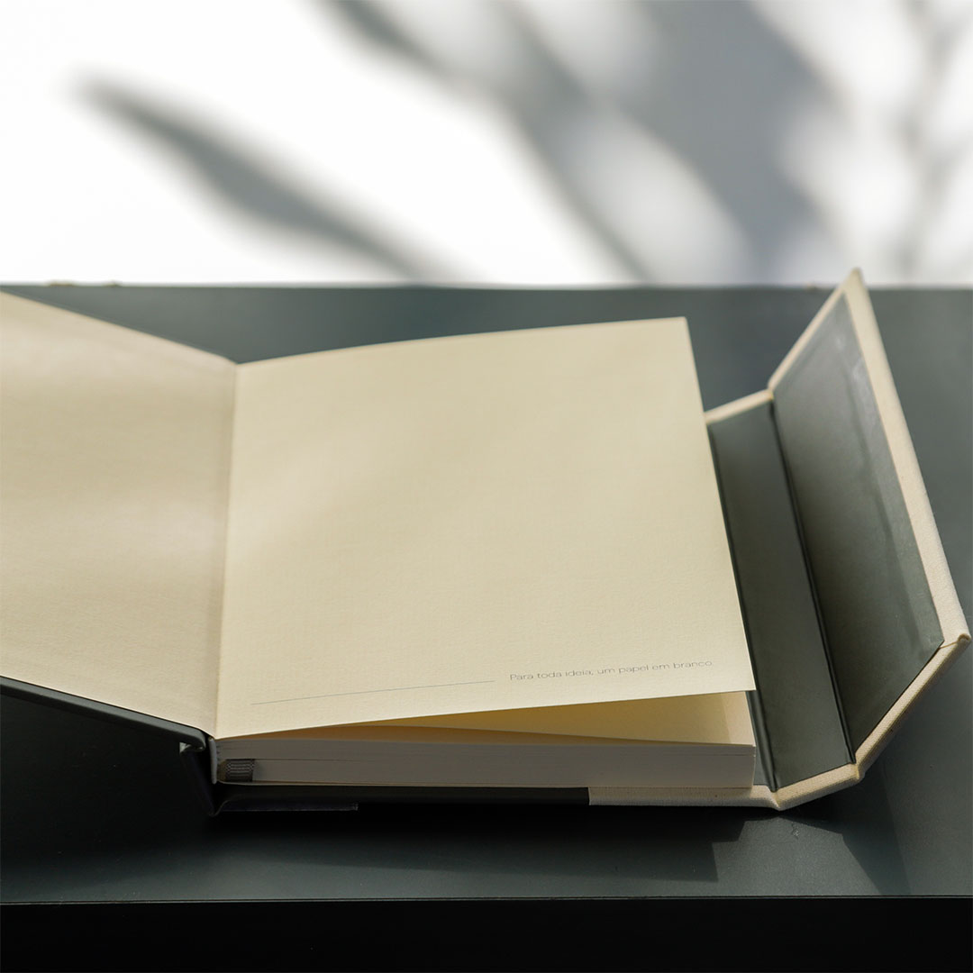 Seu design foi cuidadosamente pensado para unir forma e função: a capa dura com fechamento em ímã oferece proteção e um acabamento sofisticado.