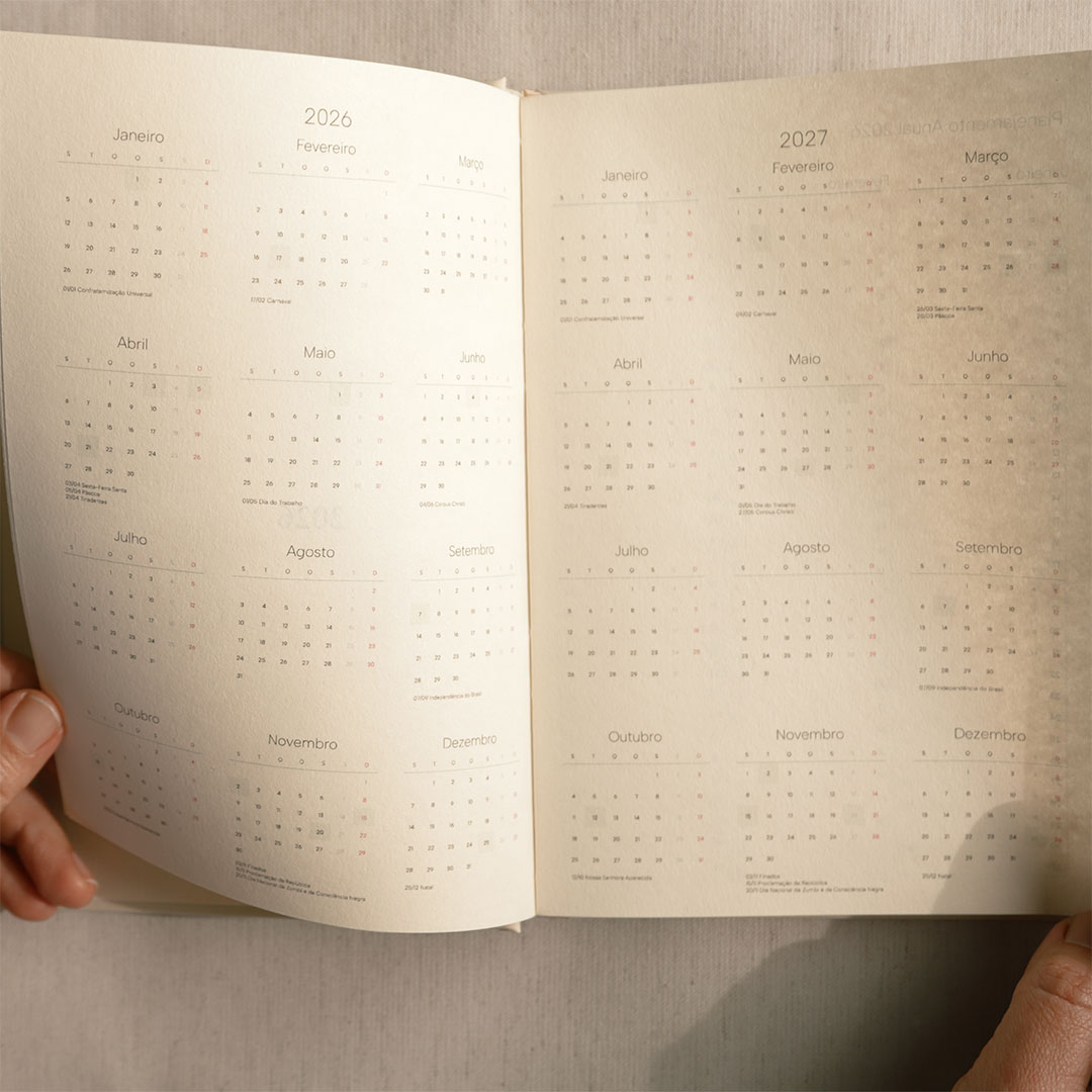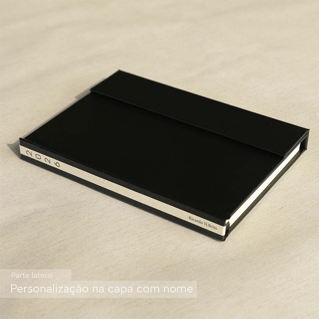 Seu design foi cuidadosamente pensado para unir forma e função: a capa dura com fechamento em ímã oferece proteção e um acabamento sofisticado.